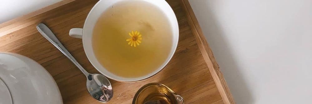 Chamomile tea is a herbal tea made by steeping dried chamomile flowers. It's known for its calming and soothing properties that can help relieve stress and anxiousness. Additionally, it can help soothe the stomach, relieve occasional gas, and reduce occasional digestive discomfort.[2]
