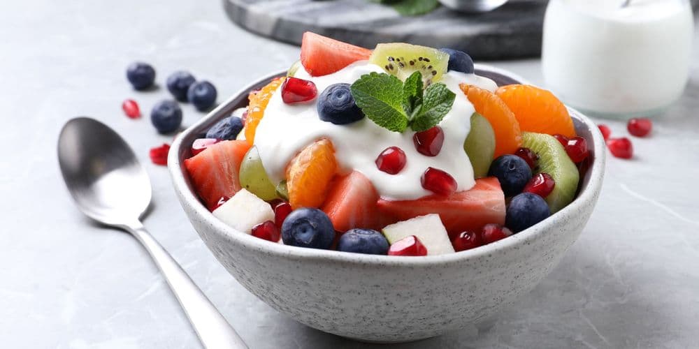 Plain yogurt mixed with your favorite fresh fruit is the perfect tasty treat to support the health of both your gut and your mouth. Yogurt typically provides probiotics, live beneficial bacteria that can promote a balanced gut microbiome which supports improved digestive health.[1]